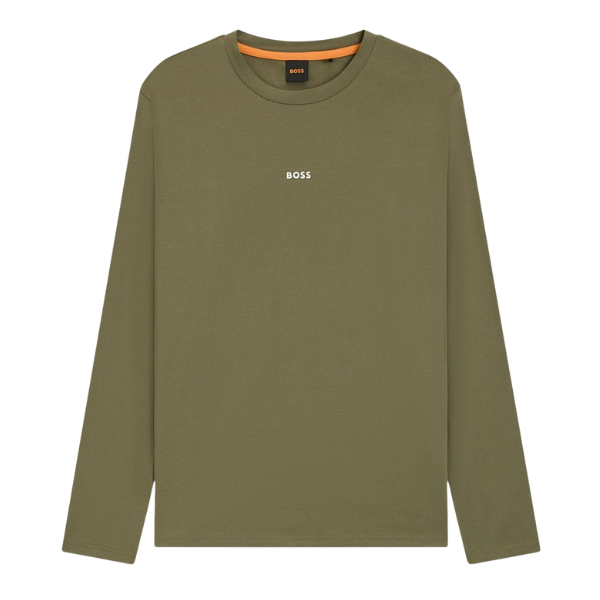 BOSS MEN SWEATER LOGO STRETCH COTTON T-SHIRT OPEN GREEN