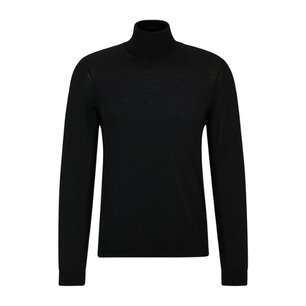 BOSS MEN PULLOVER REGULAR FIT COLL MERINOWOL BLACK