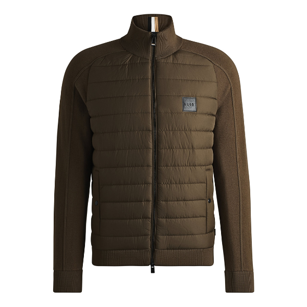BOSS MEN JACK KNITTED ESFERO MIXED MATERIALS ZIP UP OPEN GREEN