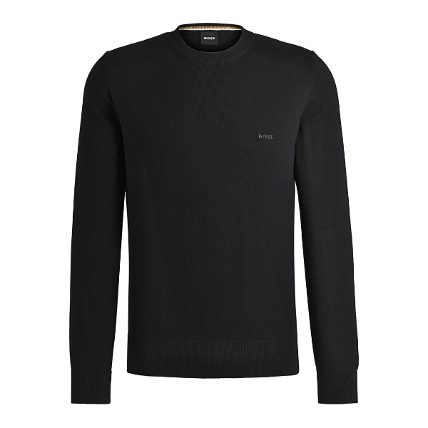 BOSS MEN SWEATER COTTON WITH EMBROIDERED LOGO BLACK