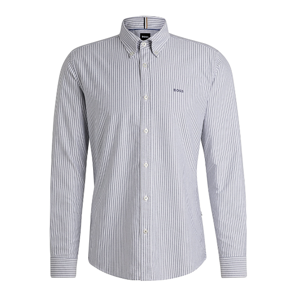 BOSS MEN OVERHEMD SLIM FIT OXFORD COTTON STRIPE NAVY
