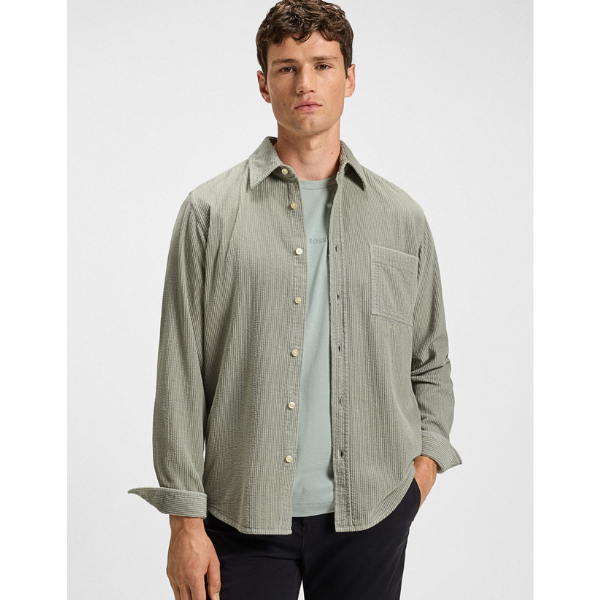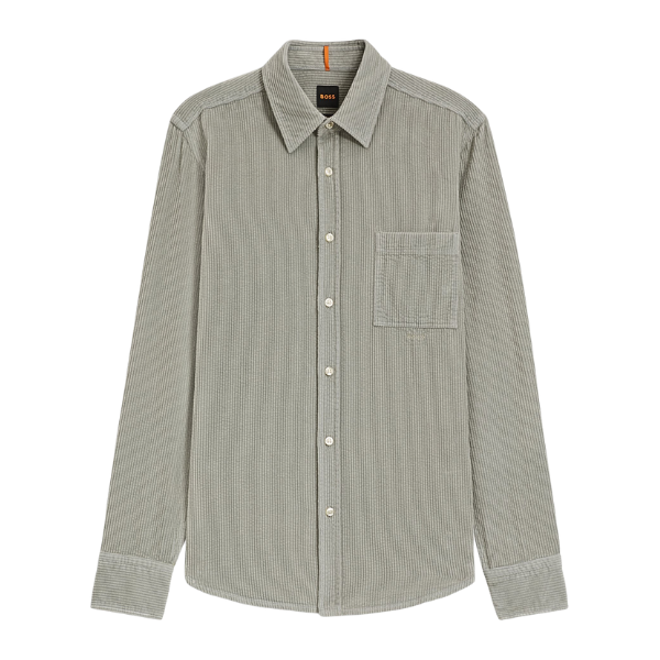 BOSS MEN OVERSHIRT REGULAR FIT COTTON CORDUROY OPEN GREEN