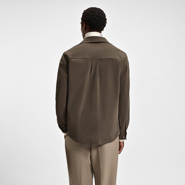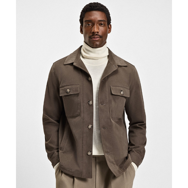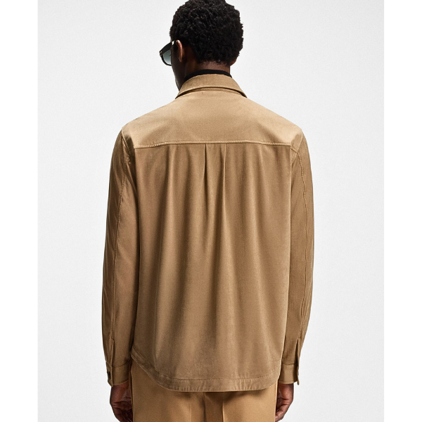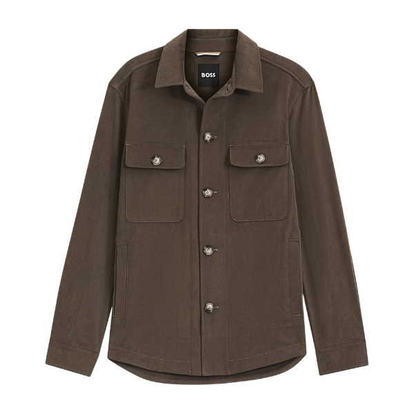 BOSS MEN OVERSHIRT RELAXED FIT MERCERIZED STRETCH COTTON OPEN BROWN