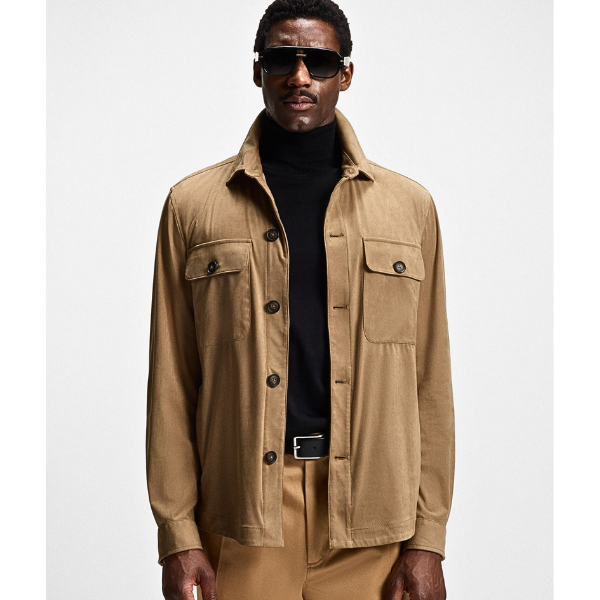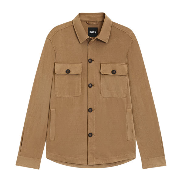 BOSS MEN OVERSHIRT RELAXED FIT STRETCH MATERIAL MEDIUM BEIGE