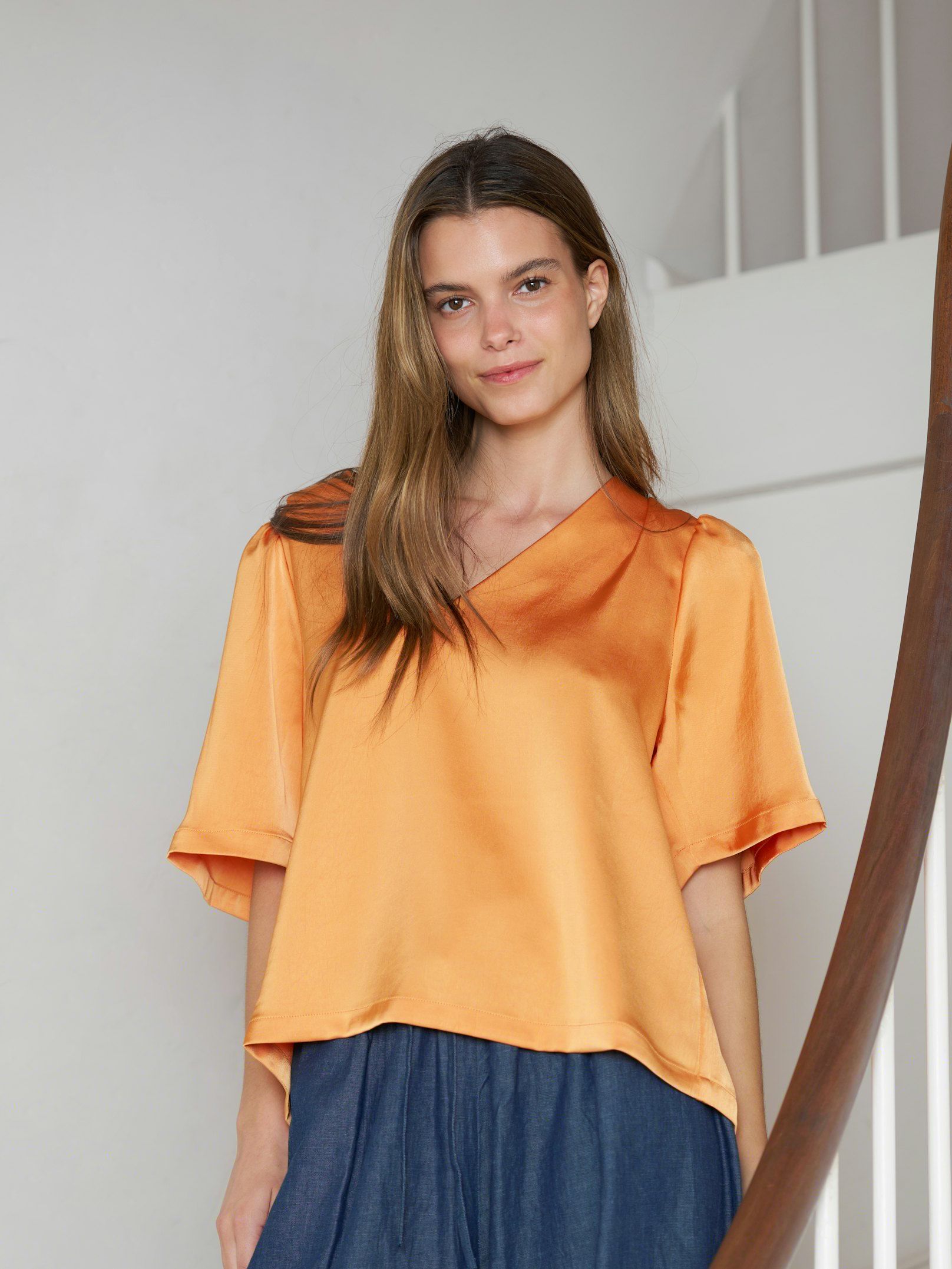 NEO NOIR TOP LARGO HEAVY SATEEN BLOUSE ORANGE