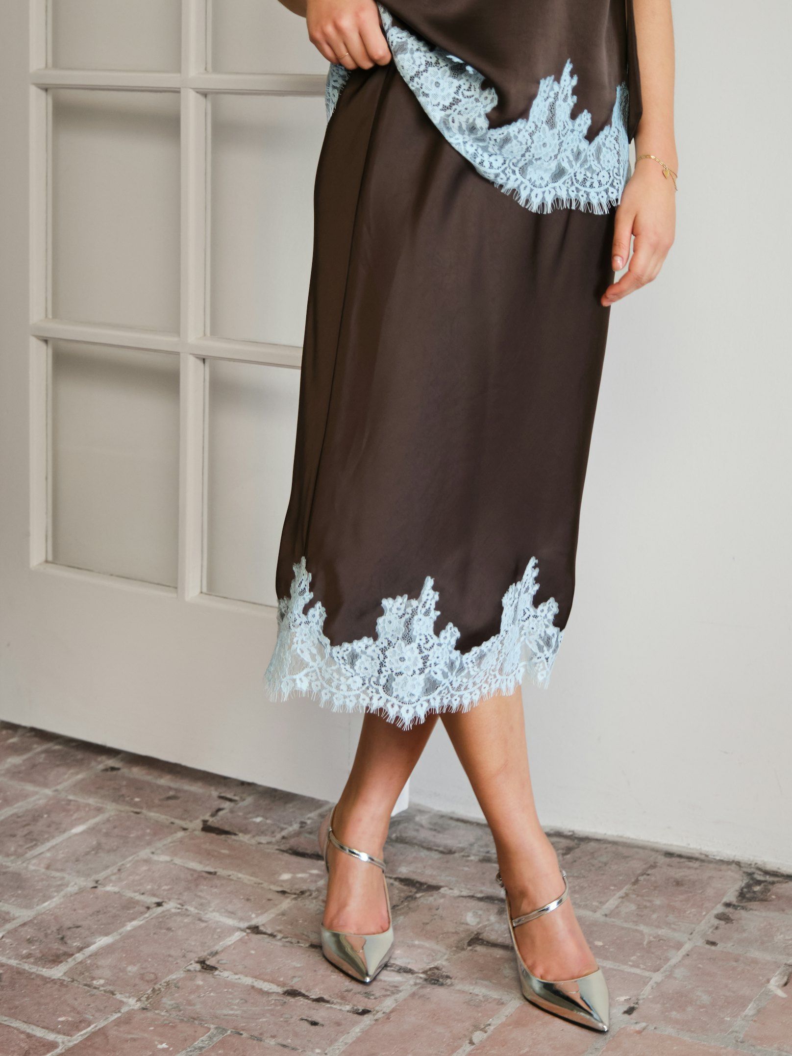 NEO NOIR ROK NAIRA LACE SKIRT DARK BROWN